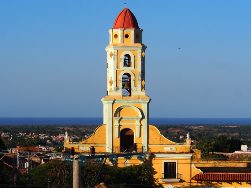 Panorama Trinidadu widziana z naszego pokoju – dawny klasztor świętego Franciszka (Convento San Francisco) z charakterystyczną dzwonnicą.