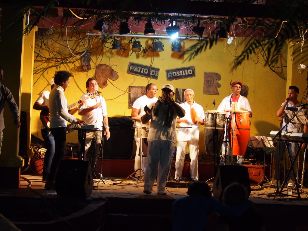 Idąc wieczorem główną uliczką Trinidadu, gdzie co kilka kroków jak grzyby po deszczu wyrastają nowe restauracje, znane przeboje kubańskie zlewają się w jeden muzyczny potok. Akurat podczas naszego pobytu miasto obchodziło 505-lecie założenia i z tej okazji muzyka oraz taniec eksplodowały ze zdwojoną siłą podczas codziennych koncertów i występów na scenie przy kościele w Casa de la Musica. Mogliśmy w ten sposób podziwiać jak bawią się przy muzyce lokalni mieszkańcy. W tanecznym rytmie pląsały całe rodziny kubańskie z babciami i wnuczkami na czele. Salsa w ich wykonaniu budziła podziw – niezależnie od wieku czy tuszy tancerzy. Nawet na rogach ulic w rytm salsy podrygiwali niczym zawodowi tancerze lekko podpici staruszkowie. Rankiem gdy w Trinidadzie budził nas śpiew kogutów, wydawało nam się że te ptaki też pieją do rytmu salsy. Wszystkim, którzy kochają muzykę i pragnęliby lepiej zanurzyć się w muzycznym fenomenie Kuby, radzę, aby jeszcze przed podróżą odbyli kurs podstawowych kroków salsy. Unikną wtedy kompromitacji, jaką przeżywał autor niniejszego bloga w czasie spóźnionej na miejscu lekcji kubańskich tańców.
