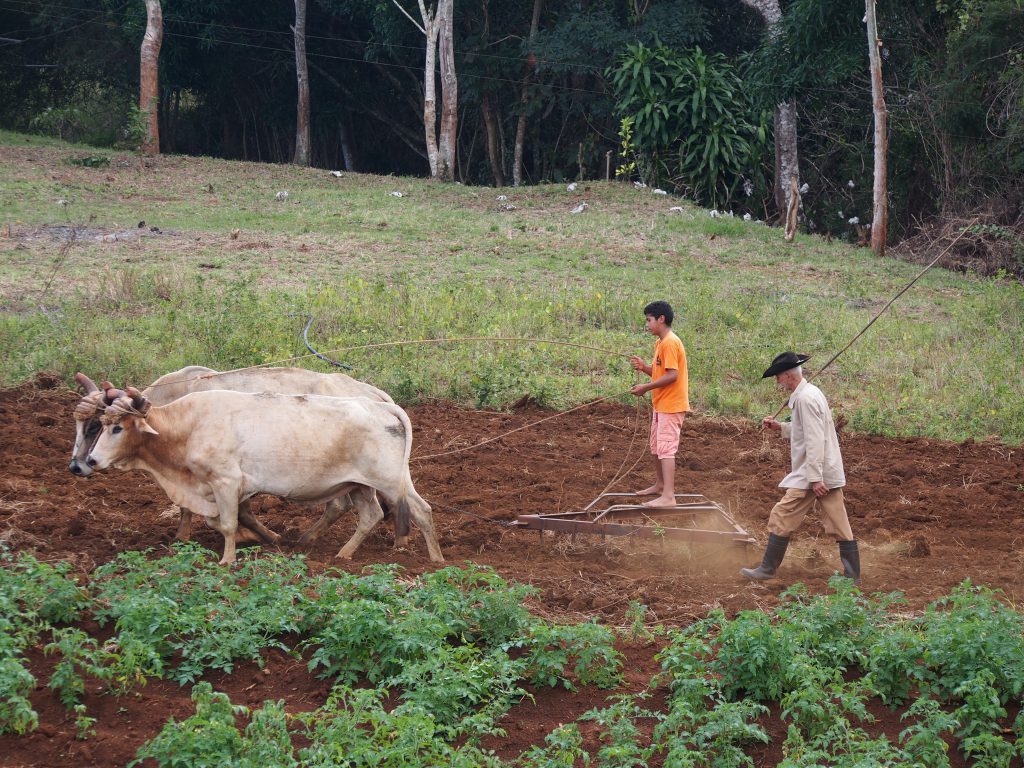 Nic dziwnego, że w Viñales kwitnie sprzedaż obwoźna owoców i warzyw. Po miasteczku krąży ze swoimi produktami wielu rolników, którzy uprawiają swoje poletka, otrzymane w ramach wspomnianej reformy. Jednak wobec braku nowoczesnych maszyn i traktorów czynią to w sposób tradycyjny. Nigdzie nie widzieliśmy tak dużo wołów z zaprzęgami jak w tutejszych dolinach.