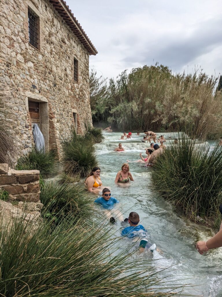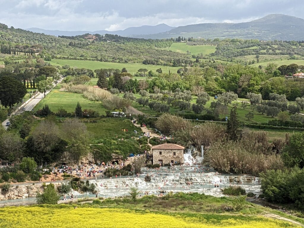 Termy w Saturni należą do najbardziej znanych i malowniczo położonych, są dosyć rozległe, ale i niestety zatłoczone, zwłaszcza w weekendy i dni świąteczne. Nic dziwnego, skoro korzystanie z term jest darmowe. Darmowa jest tylko część kaskadowa Cascate del Mulino. Choć tak darmowa do końca przecież nie jest, bo trzeba płacić za parking (ok.2.5 euro za godzinę), a tu nie przyjeżdża się na tak krótko.