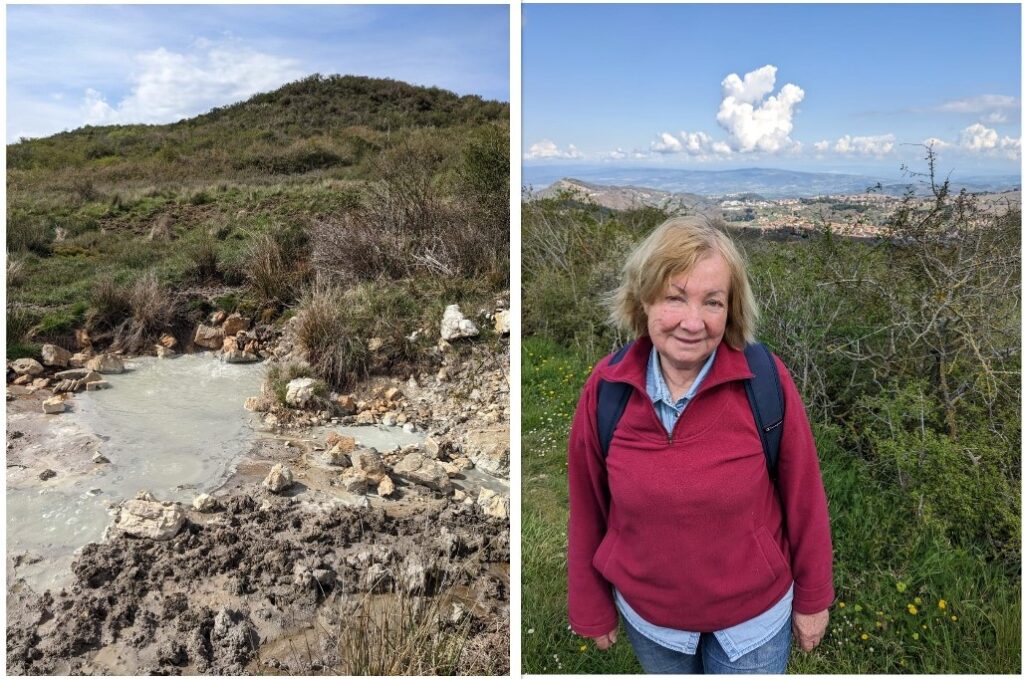 Tiziana podpowiedziała nam, że na okolicznych łąkach można spotkać bajorka z bulgocącą ciepłą wodą. Wody termalne zalegają w wielu miejscach dosyć płytko i niemal same bez ogromnych nakładów wypływają na powierzchnię.