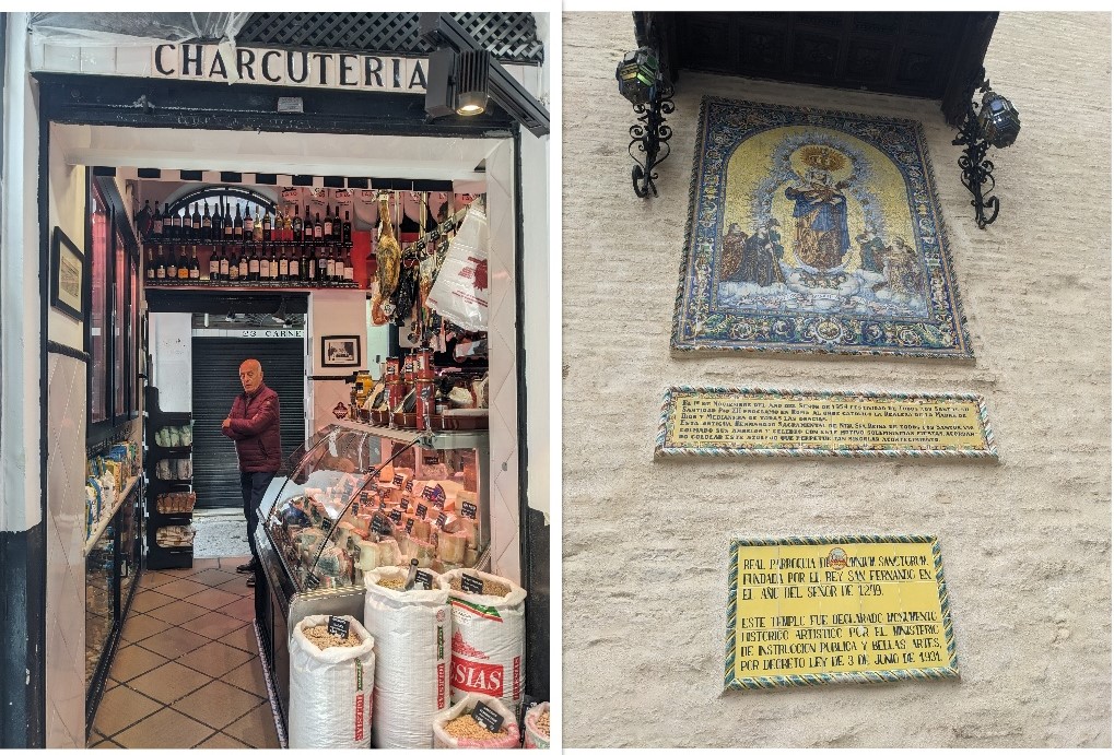 Tuż za rogiem naszej ulicy znajduje się Mercado de la Feria, lubię zaglądać do takich miejsc, lokalnych bazarów. To jeden z najstarszych w mieście, jego początki tkwią w Średniowieczu. Są tu kramy ze świeżymi rybami, owocami i warzywami, są sklepiki ze znakomitymi serami i słynnymi hiszpańskimi szynkami. Kilka knajpek ze stolikami na świeżym powietrzu oferuje tradycyjne tapas.