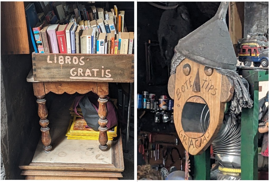 To jest chyba jedno z najbardziej zaskakujących dla mnie miejsc w Macarenie, do którego zaglądają głównie mieszkańcy Sewilli. Na pierwszy rzut oka trudno rozszyfrować, jaki jest charakter tego lokalu. Można tu kupić piwo i usiąść przy jednym ze stolików ale nie jest to przecież żaden bar. Można zaopatrzyć się w pamiątki, przynieść książkę na wymianę, posłuchać muzyki albo i prelegenta, który prowadzi akurat wykład na temat tajemnic Sewilli. Gdy tam zaglądnąłem, jakiś lokalny ekspert rozprawiał o niedostatkach komunikacji w mieście. Natomiast tuż przy wejściu stoją duże skrzynie z …węglem (są tu jego 3 gatunki). Przypomniałem sobie, że parę lat temu byłem tutaj z Jose po butle gazowe do kuchenki.
