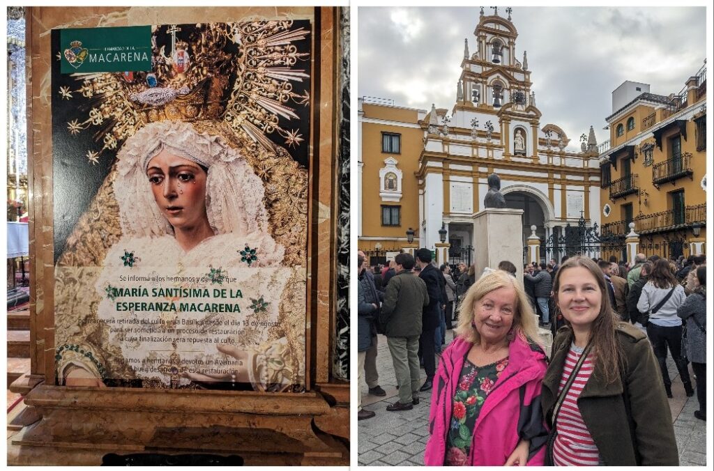 Lubimy zawsze przy okazji wizyt w Sewilli wpadać choćby na chwilę do bazyliki, aby zobaczyć słynną figurę Matki Boskiej Nadziei – La Macarenę, pochodząca z XVII wieku. Symbolizuje ona nadzieję, która umiera ostatnia. Jest przedmiotem kultu religijnego nie tylko w Sewilli, ale i w całej Hiszpanii. Apogeum sławy La Macareny przypada na coroczne obchody Semana Santa (Wielkiego Tygodnia). Rzeźbę umieszczoną na platformie podczas słynnej procesji noszą wtedy na swoich barkach tzw. costaleros. .